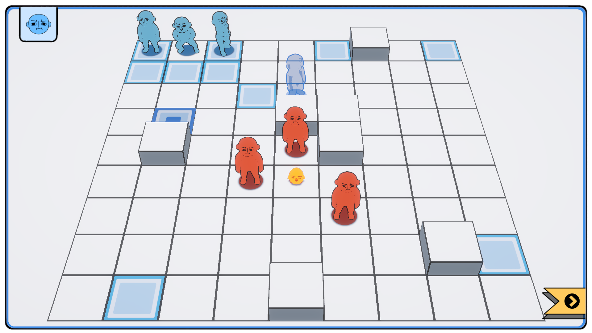 Hühnerhaufen is a two-player strategy game where you lead your figures to steal a chicken. But there is a catch: You never exactly know what your opponent is doing as all figures move simultaneously.